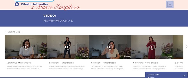 Ena takšnih vadb, ki je potekala virtualno, je bila tudi delavnica ruske dihalne telovadbe z Manco Izmajlovo. V šestih zaporednih delavnicah smo se (na)učili krepiti miselni fokus, dvigovali nivo/raven energije, krepili zdravje in odpornost. V Rusiji je namreč ta dihalna tehnika sestavni del uradne medicine, saj ima izjemen učinek na delovanje imunskega sistema, spanca in procese regeneracije telesa, preprečuje pa tudi težave z dihali. Prinaša znatno izboljšanje vzdušja v poslovni kolektiv in ima izjemen učinek na počutje, fokus in delovno sposobnost, izboljša tudi sposobnost javnega govora, izražanja idej, pozitivnega pogleda na stvari.