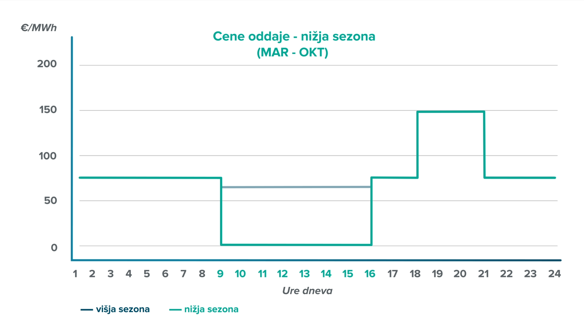 V nižji sezoni, ki traja osem mesecev v letu, je kar sedem ur na dan električna energija na voljo po najugodnejši sončni ceni. To odjemalcem omogoča občutne prihranke, še posebej če porabo prilagodijo obdobju ugodnejše cene.