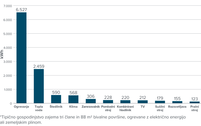 Pričakovana letna raba energije v tipičnem gospodinjstvu*